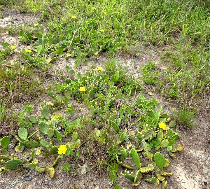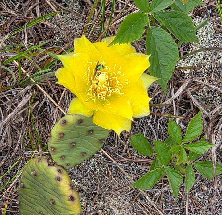 Yesterday was the Summer Solstice, and the Prickly Pears took notice. They’ve soaked up the welcome heavy rain that doused the Pine Barrens wildfires, and have come into bloom.