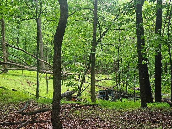 This abandoned Chevrolet is hidden deep in the woods and would make a good base camp for anyone who needs to go off-grid. I got first dibs.