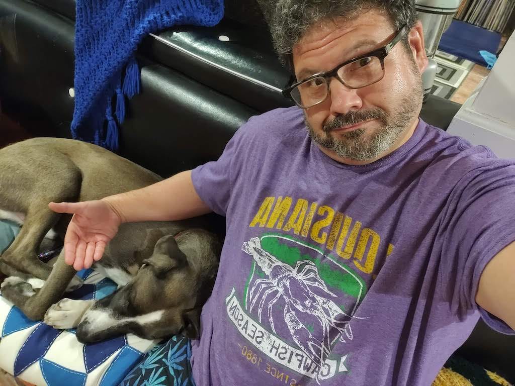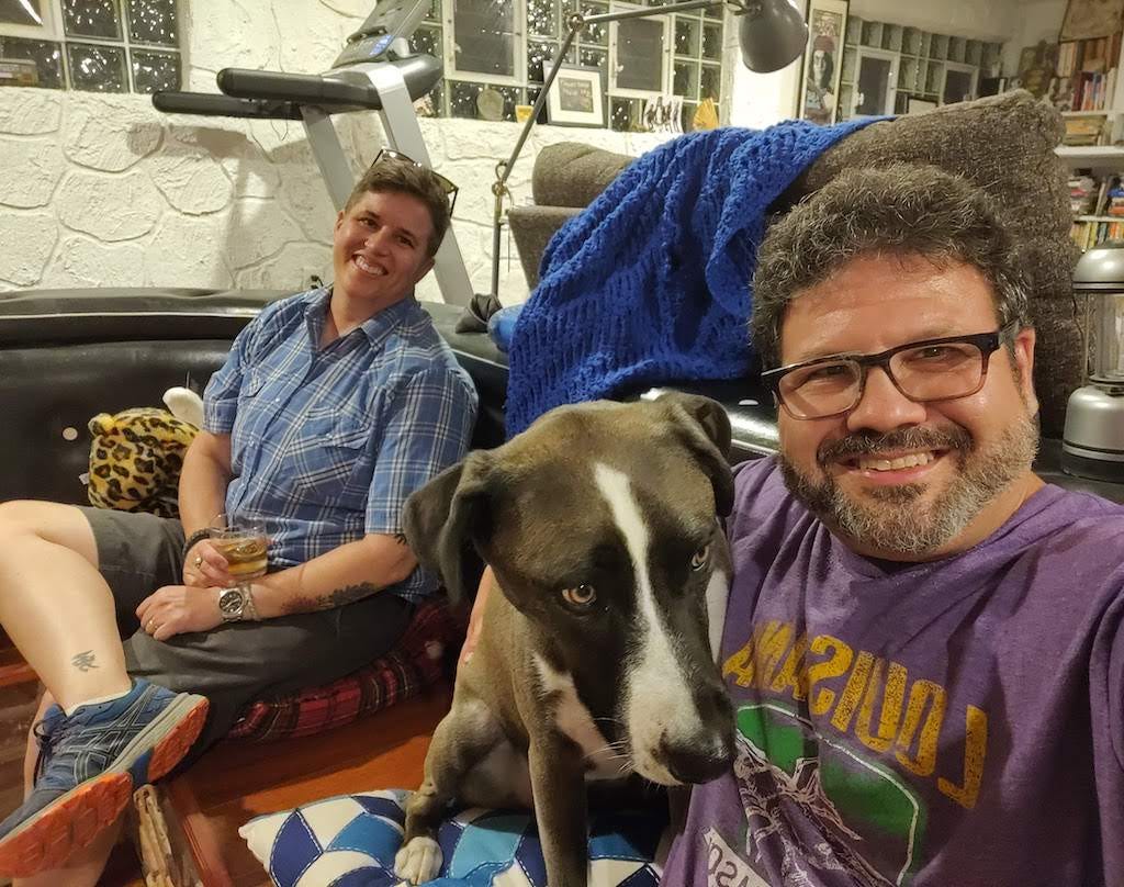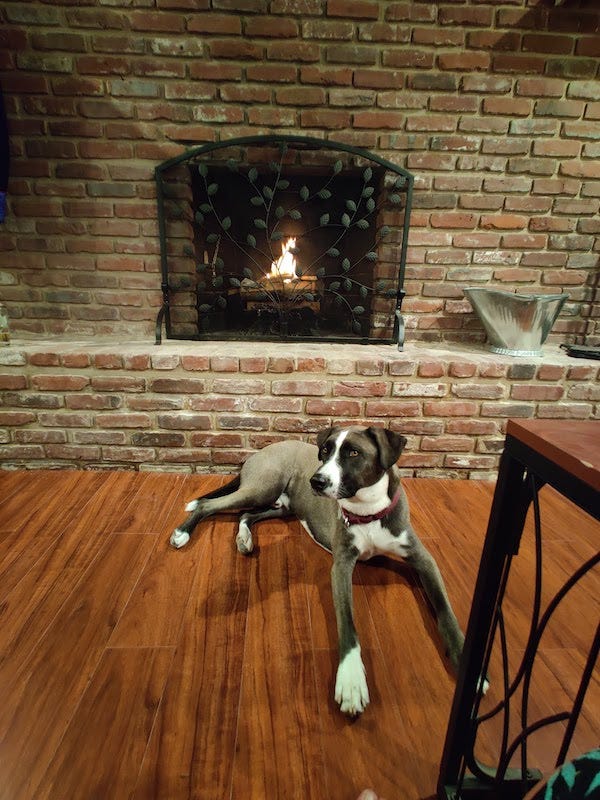 Lauren is pretty awesome, but I really wanted to meet Woody. She posts about him a lot on the hellsite known as Twitter. She had a DNA test done because no one knew what kind of mix Woody was, and now it seems obvious that he is half the unstoppable energy of a husky and half the barreling hyper-friendly goofiness of a pit bull. Maybe that’s reverse psychology at work, like astrological signs. All I know is, he’s a delightfully sweet dog and I want one just like him.