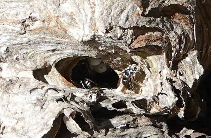 Thankfully they took heed and turned back. The Pew-Wee was able to sing his song, despite the predator looking for a meal, and the dogs had a good run in the woods, because someone warned them to avoid the hornet’s nest. Not everyone is so lucky, but we can watch out for each other. Some things are beyond our control, but we can still watch out for each other.