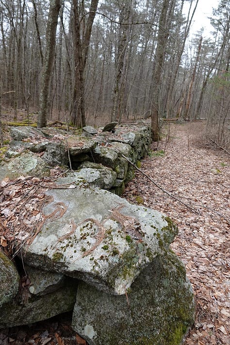 Like many of these lesser-traveled trails on Gaia—which is a great app for navigating without phone signal—this one was overgrown and hard to follow, and we lost it halfway through, following a stone wall built by a farmer over a hundred years ago. We found a large quartz boulder, plenty of Princess Pine, and I got to test out my new waterproof hiking boots in the trickle creeks that broke the path, but we found our way again, and our traipse turned a four mile trek into an eight mile one, working off the Sandwich Master gourmet reubens and subs we had the night before.