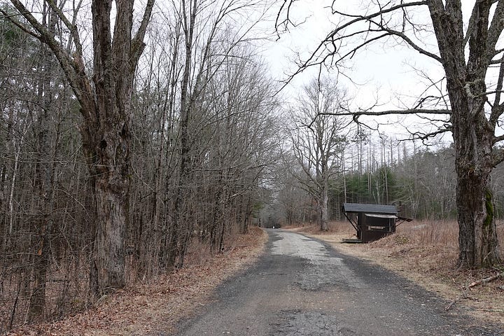 The entry paths to the Quabbin are now gated, but we found street signs and traffic markers that suggest they were open since our last visit; perhaps for deer or moose hunting. The ranger cabin (unoccupied) is little more than a gate shed, with a sign reminding you to fill out a Moose Sighting card, whether you saw one or not, and a handmade stool where the ranger must sit. We didn’t find any cards to fill out, to note that we thankfully did not encounter any moose. (They’ll stomp you to death, and I left my kukri in the car.)1