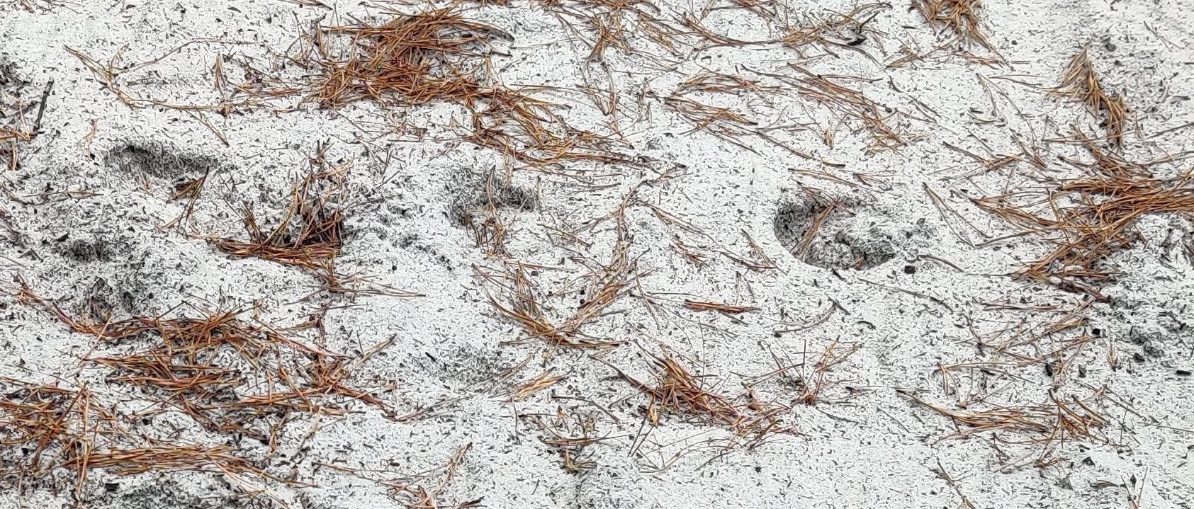 Speaking of fish stories, when I visited the hole in January, I found footprints that looked suspiciously like hoofprints in the sand near where I parked, among the many dirt bike tracks: