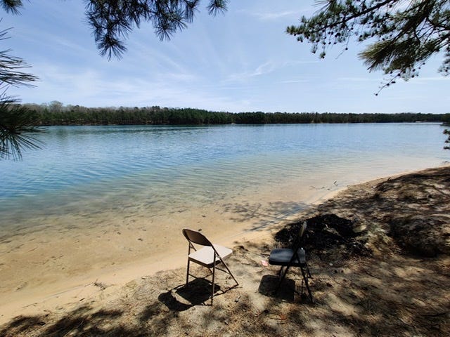 It was a memorable moment, and partly inspired by story “There Are Things in the Woods.” This particular blue hole is a favorite spot for dog walkers, blueberry pickers, and litterbugs, who like to grill and leave piles of trash and beer cans next to their folding chairs. This is probably why the Department of Environmental Protection has marked this section closed for the foreseeable future. They can’t patrol everything, and while I was there, I saw people in the water with their dogs. Blue holes claim lives every year by drowning, so between this and the mounds of trash, it’s now ruined for everybody.