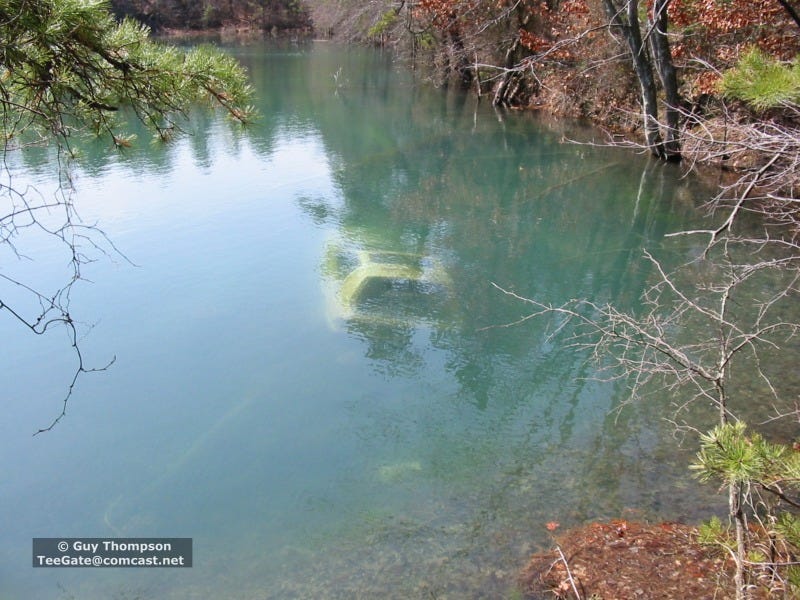 The Instagrammers came by kayak, and had a drone to take video. Which is illegal, in Wildlife Management Areas, but who’s enforcing? (The video hasn’t shown up on their feed yet, either). The hole has seen better days. Beck described it as “crystal blue” but the feeder from the creek keeps getting clogged, and it is mostly stagnant these days, covered in algae and too dangerous to swim across, not for fear of the chill from its “bottomless” depths, but from tangling your legs in the weeds and drowning. According to Beck, scientists lowered a cable with a weight and found this bottomless; no one has tested this as far as I know. He also claimed that some locals said it was created by a meteor, but like many “facts” that begin with some say, the only sayer is the one claiming that some say.2
