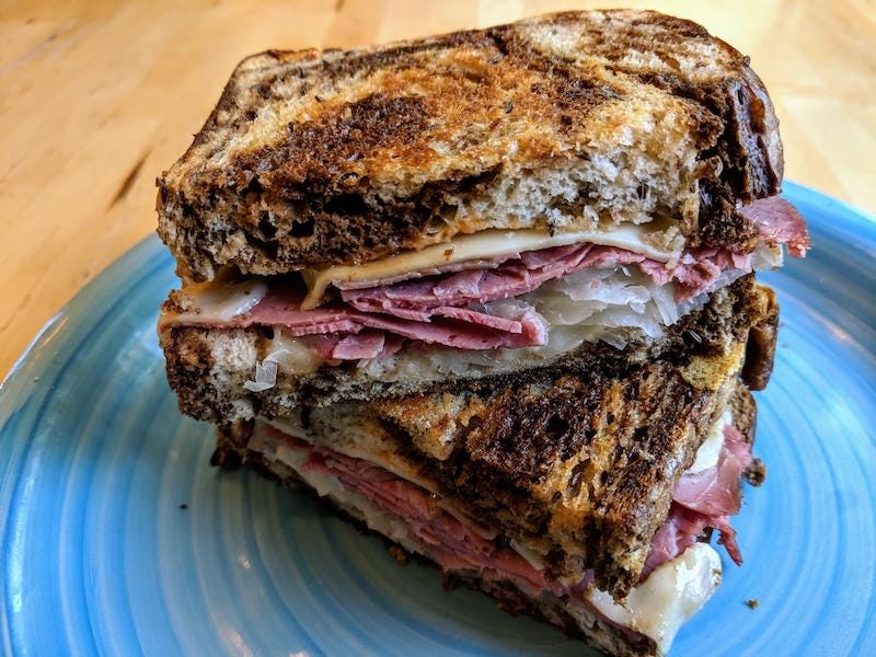Holy shit Tom. More twists and turns than the strings of melted Swiss stretching from a hot griddled Reuben. Also, you have the best food descriptions -- even at the end there, I’m still half-convinced that the sandwich might have been worth it.