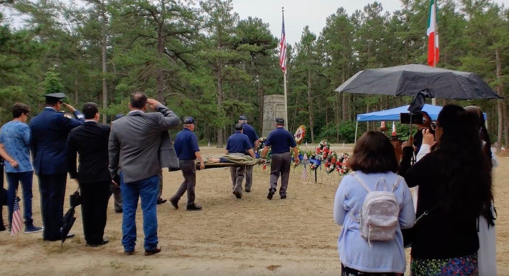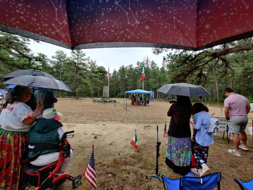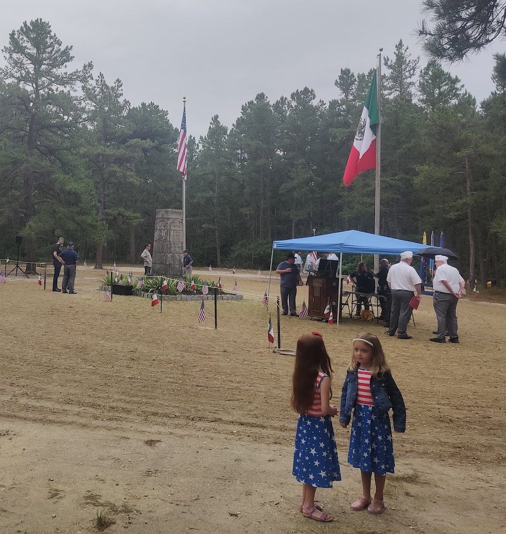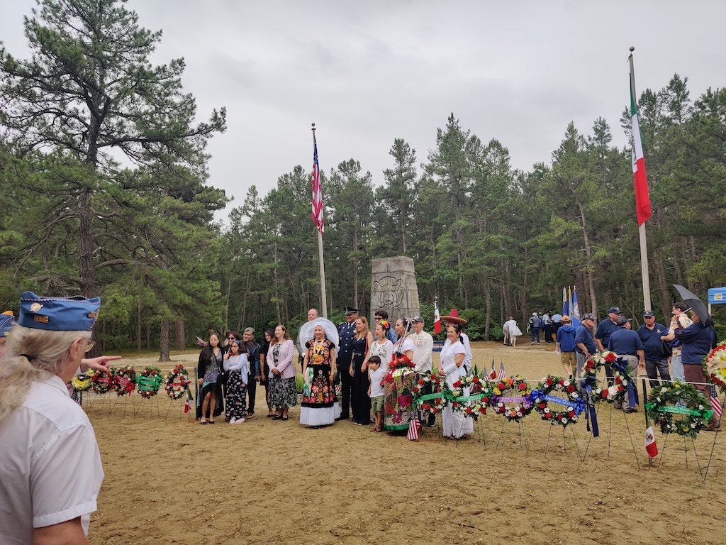 I’d been meaning to attend the tribute service for years. It was well worth it, and if you haven’t visited this unique monument in the Pines, this event makes for the perfect reason to drive down on a summer day, visit the many historic ruins and natural sights in the area, then grab a bite at Hot Diggity Dog in Chatsworth, or Lucille’s Country Cooking in Lacey Township. You probably won’t run into the Jersey Devil, much less the Russian that Paulie and Christopher were looking for (Hint: try upstate New York, where that episode was actually filmed). But you’ll find good people, and a part of the Garden State that’s visited yearly by a contingent from Mexico, to honor a fallen hero on a mission of peace.